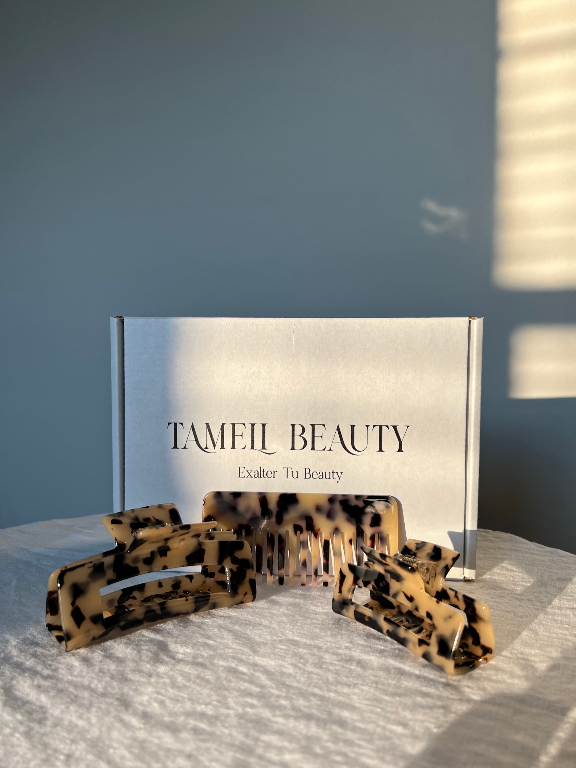 Introducing our 'Brave' collection, where boldness meets elegance. Embrace your wild side with our exquisite acetate cellulose claw featuring a sophisticated animal print design in black and brown hues. Each claw exudes confidence and style.
